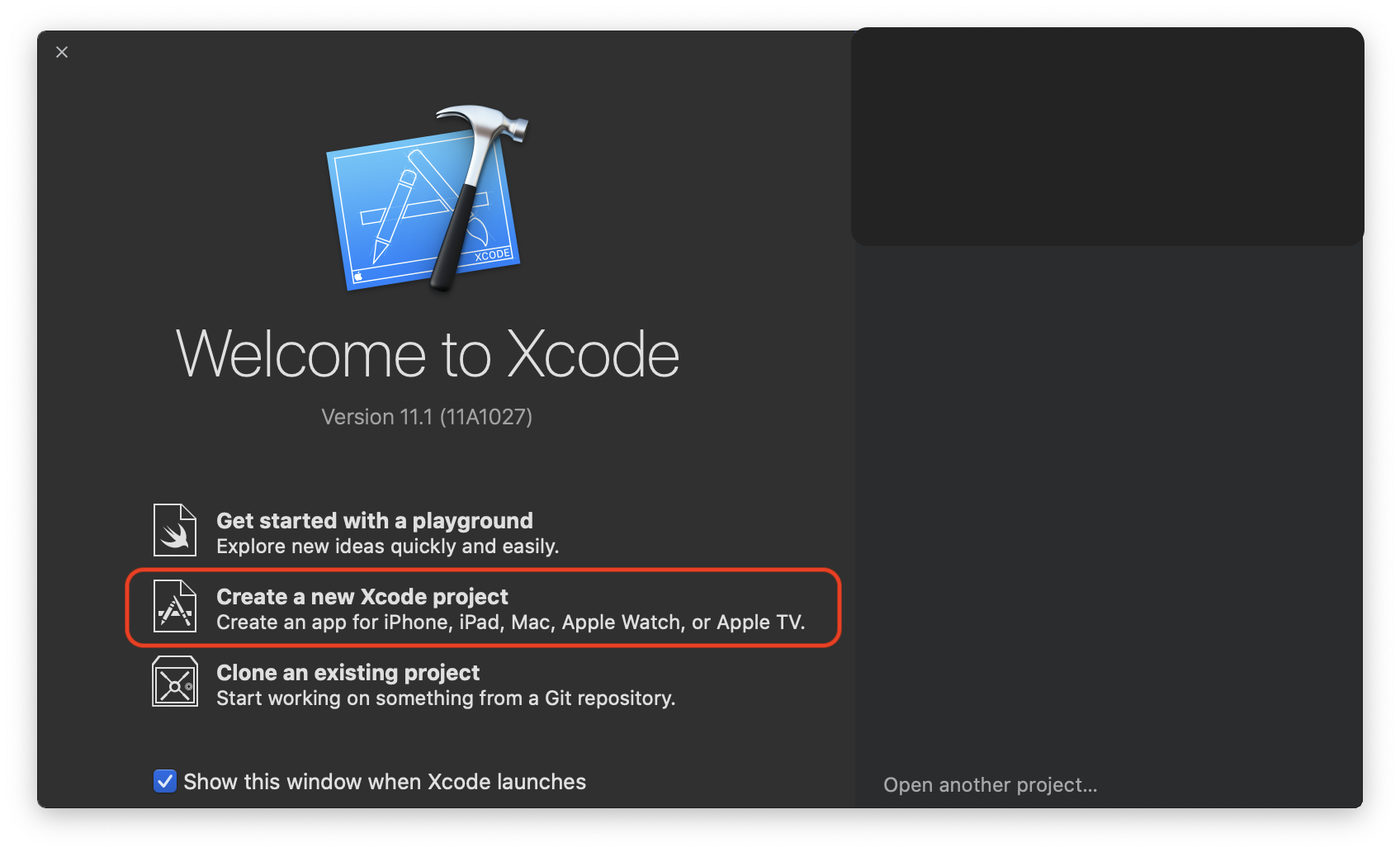 STEP 1 : Xcode 메인화면에서 'Create a new Xcode Project' 선택하기