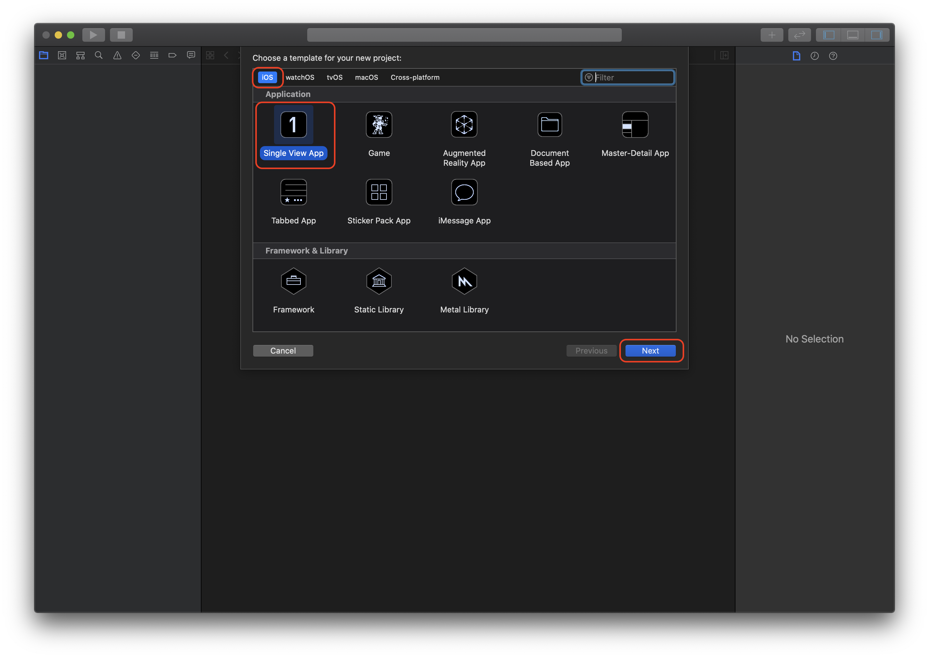 STEP 2 : 'Single View App' 템플릿 선택하기