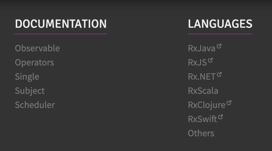 각 플랫폼의 개발 언어 앞에 Rx접두어를 붙인 이름의 라이브러리들을 만들어 놨기에 가능한 것이죠.